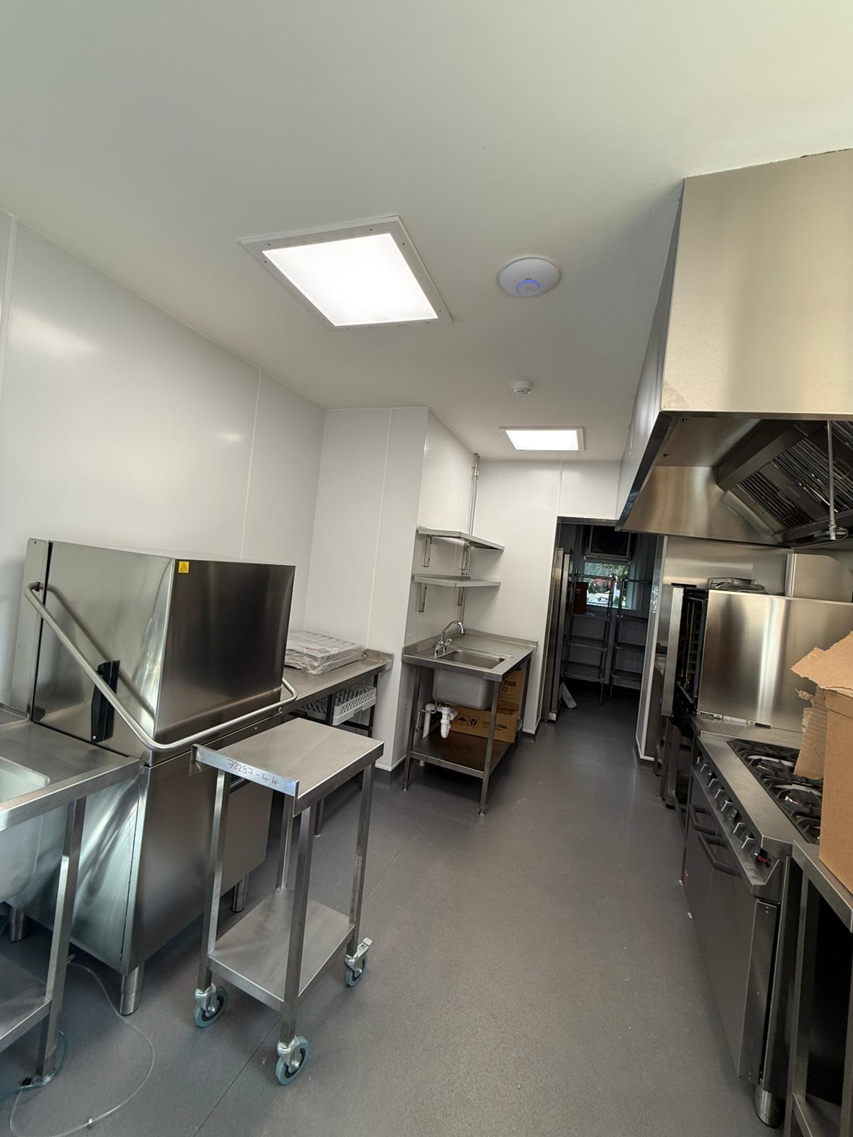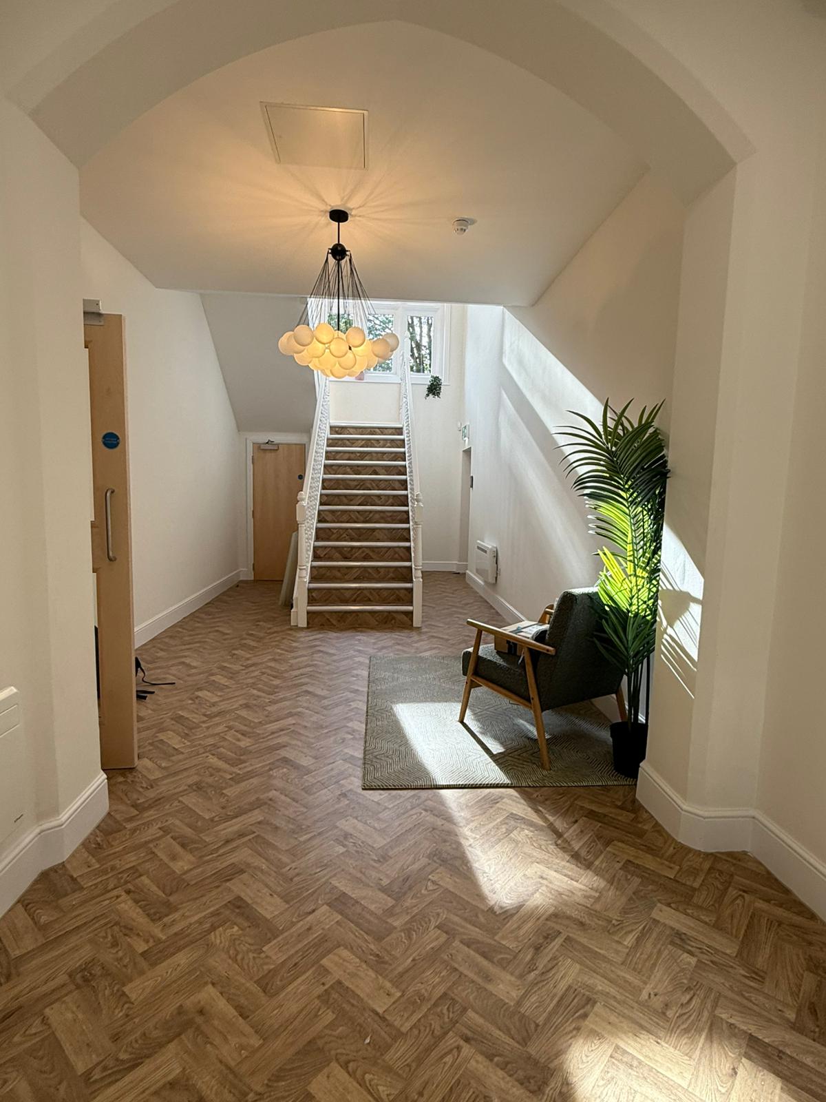 A full lighting, emergency lighting and external lighting scheme was designed and installed in line with the specification with flush lighting installed throughout internally with client led feature pendants where required.