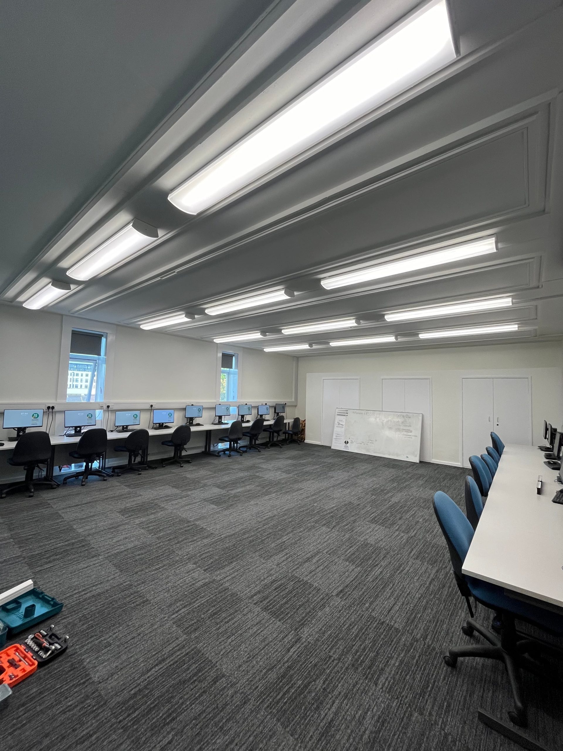 Working around other projects the college had ongoing through the busy summer period HG Electrical planned and prioritised the replacement of over 1500 light fittings in the 6 week contract period.